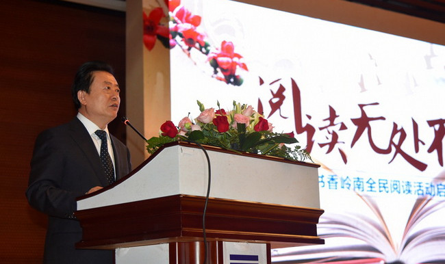 4月22日,2015“书香岭南”全民阅读活动启动仪式在广州图书馆举行。国家新闻出版广电总局副局长孙寿山出席启动仪式并致辞。