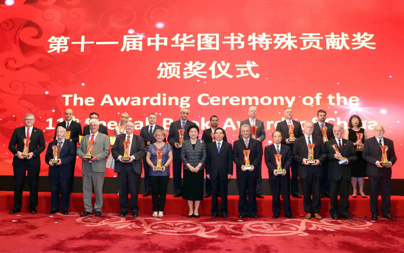 8月22日下午,第十一届中华图书特殊贡献奖颁奖仪式在人民大会堂举行,中共中央政治局委员、国务院副总理刘延东代表中国政府会见20名获奖的外国专家,并向他们颁奖。中宣部副部长、国家新闻出版广电总局局长聂辰席出席颁奖仪式并致辞。中宣部副部长庹震、国务院副秘书长彭树杰、国家新闻出版广电总局副局长周慧琳、北京市副市长王宁、中国出版协会常务副理事长邬书林出席颁奖仪式。国家新闻出版广电总局副局长吴尚之主持仪式。