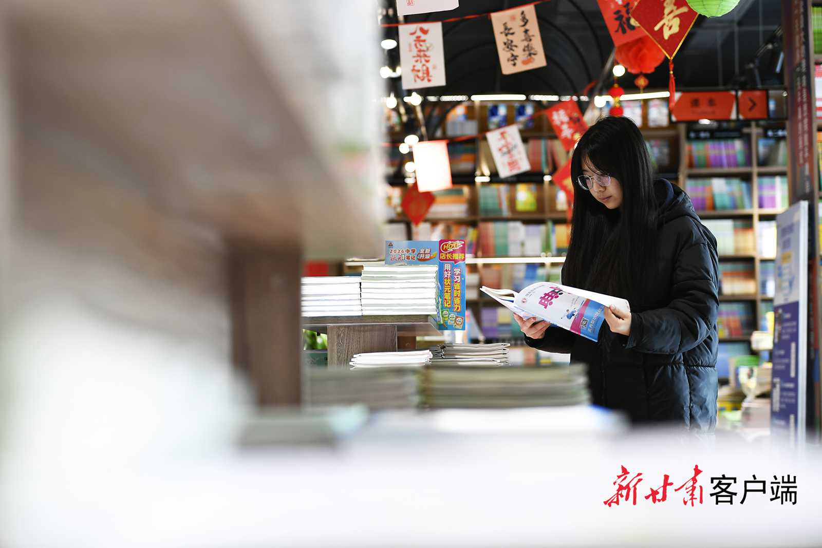 2月22日,农历大年初六,兰州市张掖路新华书店内,众多读者在宁静的氛围中品读好书,尽享阅读之乐。