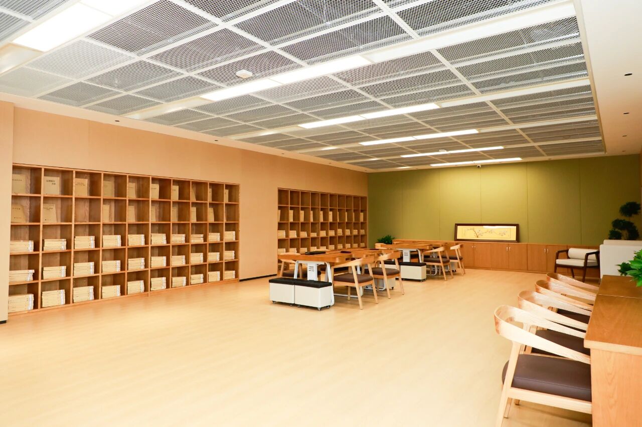 雄安图书馆坐落于启动区,总建筑面积约6.8万平方米,地上七层、地下两层,设有综合服务大厅、幼儿及少儿阅览区、休闲阅览区、电子阅览室、书香会客厅、空中花园等多功能特色主题空间。该馆设计藏书量约150万册,可提供阅览座席约3500个。外观采用“中西合璧、以中为主、古今交融”的设计理念,屋顶水平延展、基座敦实稳重、屋身挺拔对称,整体构图借鉴三段式传统建筑特征,彰显着中国古典美学的气韵。外立面以简牍为灵感,形成类似书本翻页的动态视觉效果。竖向梭形百叶系统,既能满足遮阳需求,又营造出“书海泛舟”的阅读氛围。雄安图书馆不仅服务本地居民,更辐射周边高校、企业总部和产业园区,助力构建“15分钟阅读圈”,将成为提升新区文化软实力、引聚青年人才、激发创新活力的重要平台。
