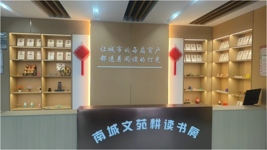 南城文苑耕读书房是由淄博市文化和旅游局指导,淄博市图书馆、淄博经济开发区南定镇政府联合打造的新型公共阅读空间,书房位于南定小学与南定中学之间的核心地段,服务覆盖周边五个村居社区,惠及居民三万余人。书房面积约200平方米,科学规划成人、少儿阅读区域,配备自助借还机等智能设备,接入淄博市图书馆总分馆服务体系,实现了图书通借通还、资源共建共享,是丰富群众精神文化生活、提升基层文化服务效能的重要平台。