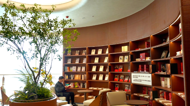 据了解,这座三层文化空间占地4000平方米,以“自然融入”为特色,藏书2.5万册,集阅读、咖啡、展览等多种功能于一体。此前尚未正式开放时,已有不少市民慕名前来打卡拍照,他们或在梯田式阅读区小坐翻阅,或倚在落地窗边取景,将书房的雅致与金漪湖的秀美一同定格。