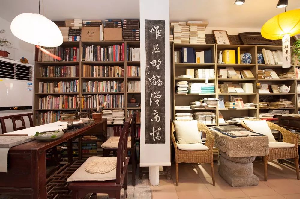 在书店,可静坐读书,可观摩修复古籍,可抚琴,也可环坐四周。