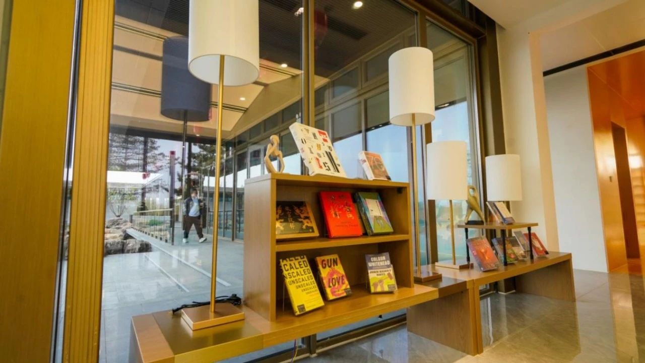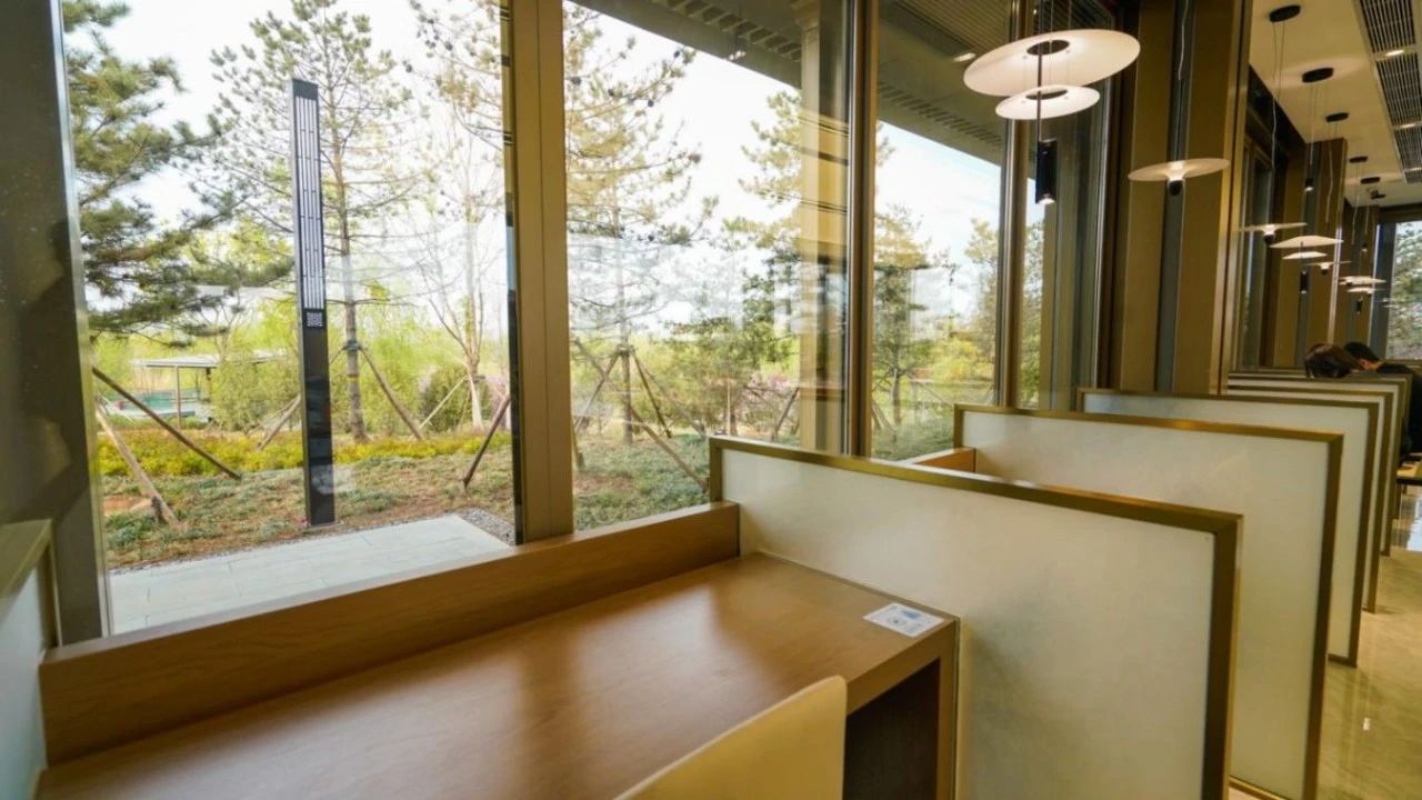 书店坐落在雄安中央绿谷公园星汉台,位于公园最高点,被湖水、绿树等围绕,以“公园+”的生态文化空间,打造自然与阅读交融的复合式文化生活场景。店内划分“知识阅读馆”“家庭生活馆”“艺术体验馆”“文化会客厅”四大功能,结合雄安新区定位,策划“读懂中国经济”“‘大美’中国”“人类智能时代和人类价值”重点主题书展。