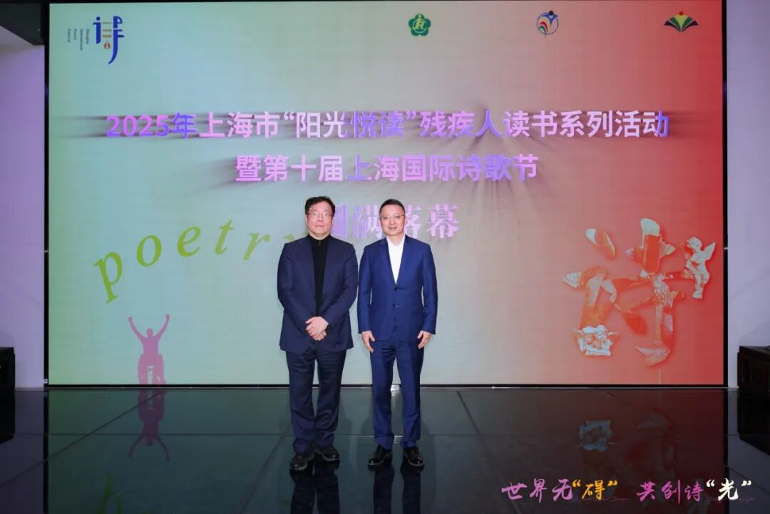 近日,上海书城内诗意流淌、暖意融融。2025年上海市“阳光悦读”残疾人读书系列活动闭幕式暨第十届上海国际诗歌节闭幕式在此隆重举行。上海市残联党组成员、副理事长戴光铭,文汇报社社长缪克构,上海国际诗歌节艺术委员会主席赵丽宏出席了本次活动。