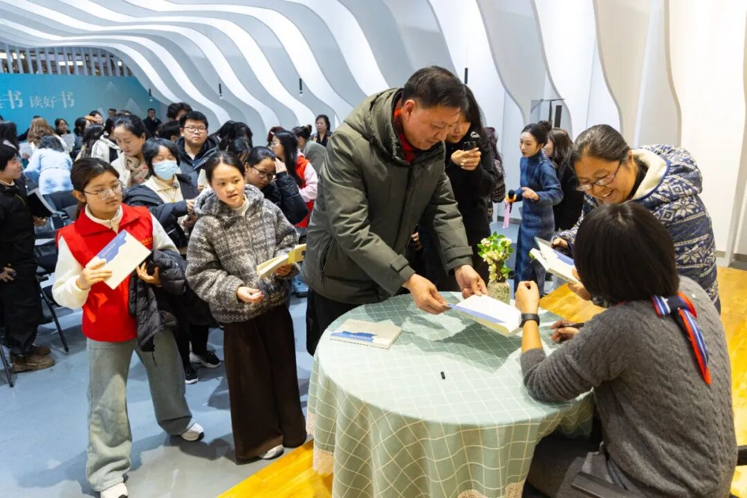 签名赠书环节,读者有序排队,作家江华为每位读者签名并送上祝福,现场书香弥漫、温情流动,每一本书都成为连接作者与读者的心灵纽带。