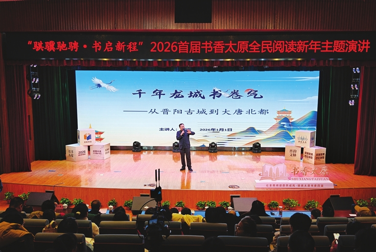 1月1日,由市读书协会等单位主办的“骐骥驰骋·书启新程”2026年首届书香太原全民阅读新年主题演讲在太原市图书馆举行。郭苑甫 摄