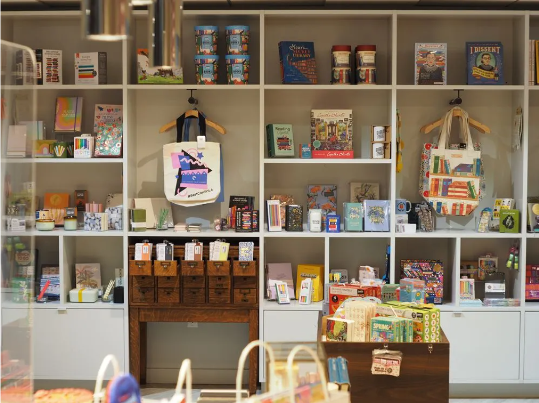 美国洛杉矶公共图书馆内开设了一家礼品店图书馆商店(The Library Store),是书虫与文具爱好者的天堂。店内有钢笔、笔记本、贺卡等色彩缤纷、设计有趣的文具,均带有浓厚书卷气息,能满足爱书之人对文学周边的一切想象。在这里,消费者不仅能挑选到心仪的礼物,每笔消费还都直接支持图书馆基金会,助力丰富多样的文化项目。