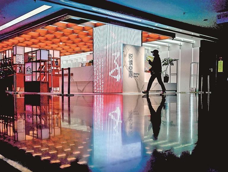 中国国家图书馆内,读者从悦读空间前走过。新华社发
