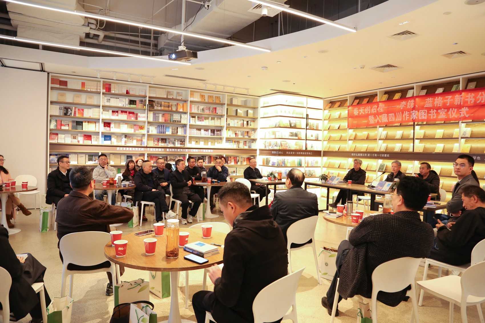 3月18日,“春天的启程”新书分享暨入藏四川作家图书室仪式在阿来书房启幕。李铣诗集《酒和夜航船》、蓝格子诗集《迷宫造访者》正式入藏,龚学敏、张历、杨献平、熊焱、尚仲敏、马嘶、黎阳、羌人六等作家、诗人、评论家齐聚一堂展开研讨。